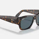 Bu model, kalın asetat çerçevesi ve belirgin köprü tasarımıyla yüz hatlarını vurgular. Koyu mavi lensleri, güneş ışığını etkili bir şekilde filtreleyerek net bir görüş sağlar.
